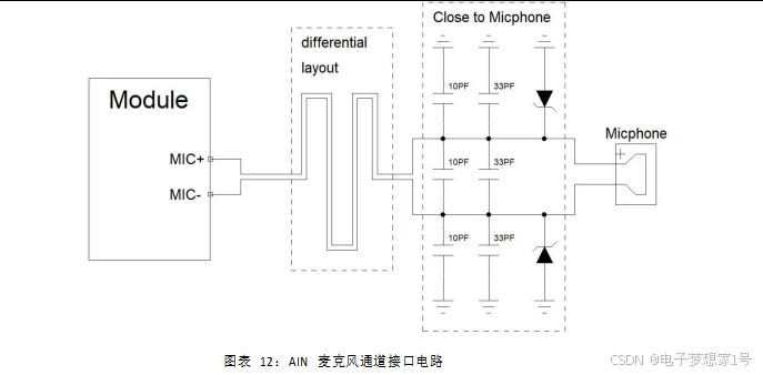 AIN1通道已内置驻极体麦克风偏置电压。 参考电路下图所示: