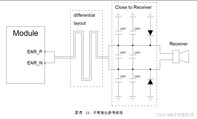 听筒输出可以驱动 32 欧姆的差分听筒,参考电路如下: