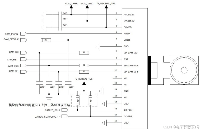 - 模块内部可以配置I2C 上拉,故CAMI2C 接口的上拉电阻可以不贴;