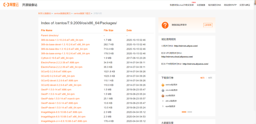 阿里云镜像库 https://mirrors.aliyun.com/centos/7.9.2009/os/x86_64/Packages