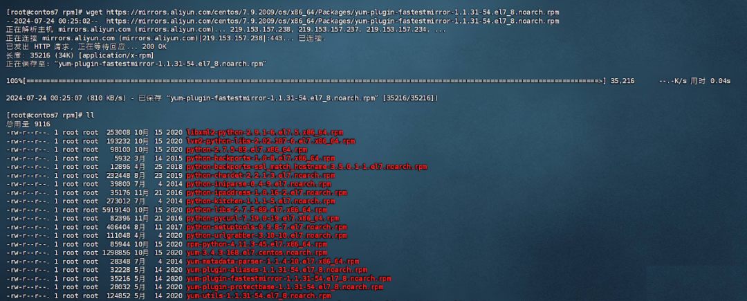wget https://mirrors.aliyun.com/centos/7.9.2009/os/x86_64/Packages/lvm2-python-libs-2.02.187-6.el7.x86_64.rpmwget https://mirrors.aliyun.com/centos/7.9.2009/os/x86_64/Packages/libxml2-python-2.9.1-6.el7.5.x86_64.rpmwget https://mirrors.aliyun.com/centos/7.9.2009/os/x86_64/Packages//python-libs-2.7.5-89.el7.x86_64.rpmwget https://mirrors.aliyun.com/centos/7.9.2009/os/x86_64/Packages/python-ipaddress-1.0.16-2.el7.noarch.rpmwget https://mirrors.aliyun.com/centos/7.9.2009/os/x86_64/Packages/python-backports-1.0-8.el7.x86_64.rpmwget https://mirrors.aliyun.com/centos/7.9.2009/os/x86_64/Packages/python-backports-ssl_match_hostname-3.5.0.1-1.el7.noarch.rpmwget https://mirrors.aliyun.com/centos/7.9.2009/os/x86_64/Packages/python-2.7.5-89.el7.x86_64.rpmwget https://mirrors.aliyun.com/centos/7.9.2009/os/x86_64/Packages/python-iniparse-0.4-9.el7.noarch.rpmwget https://mirrors.aliyun.com/centos/7.9.2009/os/x86_64/Packages/python-pycurl-7.19.0-19.el7.x86_64.rpmwget https://mirrors.aliyun.com/centos/7.9.2009/os/x86_64/Packages/python-urlgrabber-3.10-10.el7.noarch.rpmwget https://mirrors.aliyun.com/centos/7.9.2009/os/x86_64/Packages/python-setuptools-0.9.8-7.el7.noarch.rpmwget https://mirrors.aliyun.com/centos/7.9.2009/os/x86_64/Packages/python-kitchen-1.1.1-5.el7.noarch.rpmwget https://mirrors.aliyun.com/centos/7.9.2009/os/x86_64/Packages/python-chardet-2.2.1-3.el7.noarch.rpmwget https://mirrors.aliyun.com/centos/7.9.2009/os/x86_64/Packages/rpm-python-4.11.3-45.el7.x86_64.rpmwget https://mirrors.aliyun.com/centos/7.9.2009/os/x86_64/Packages/yum-utils-1.1.31-54.el7_8.noarch.rpmwget https://mirrors.aliyun.com/centos/7.9.2009/os/x86_64/Packages/yum-3.4.3-168.el7.centos.noarch.rpmwget https://mirrors.aliyun.com/centos/7.9.2009/os/x86_64/Packages/yum-metadata-parser-1.1.4-10.el7.x86_64.rpmwget https://mirrors.aliyun.com/centos/7.9.2009/os/x86_64/Packages/yum-plugin-aliases-1.1.31-54.el7_8.noarch.rpmwget https://mirrors.aliyun.com/centos/7.9.2009/os/x86_64/Packages/yum-plugin-protectbase-1.1.31-54.el7_8.noarch.rpmwget https://mirrors.aliyun.com/centos/7.9.2009/os/x86_64/Packages/yum-plugin-fastestmirror-1.1.31-54.el7_8.noarch.rpm