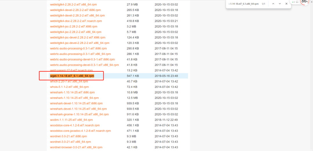找到的这个wget-1.14-18.el7_6.1.x86_64.rpm 下载下来
