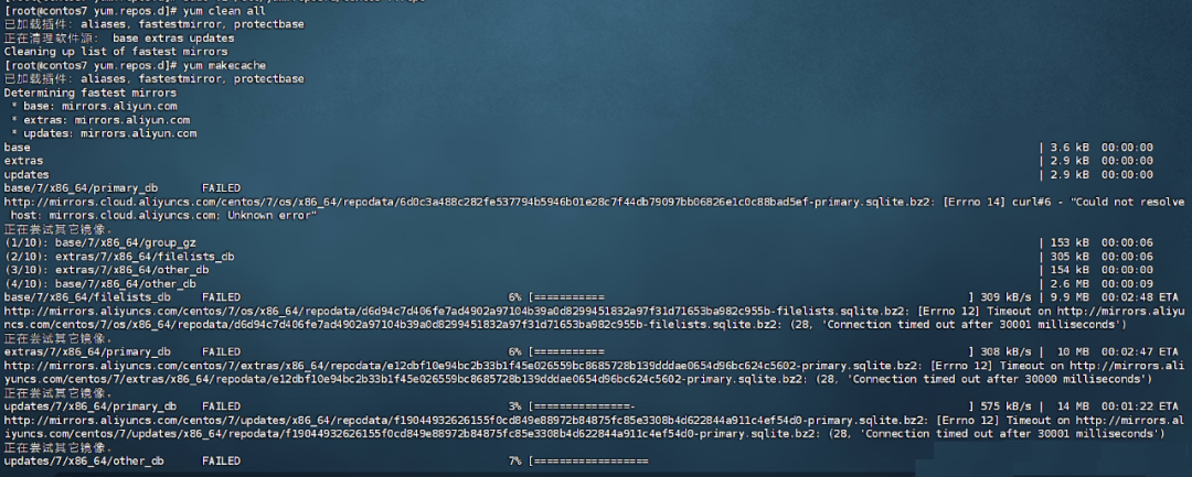 还有说:在 /etc/yum.repos.d/CentOS-Base.repo 文件中,找到并修改 baseurl 和 mirrorlist 为其他可用的镜像源地址。