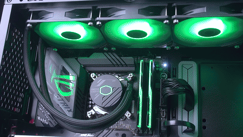 以上就是用华硕软件ARMOURY CRATE设置,让风扇、水冷、内存、主板同步,获得整体灯效。不错吧?常用模式有:彩虹、移色、呼吸、星空等,也可以自己编程。