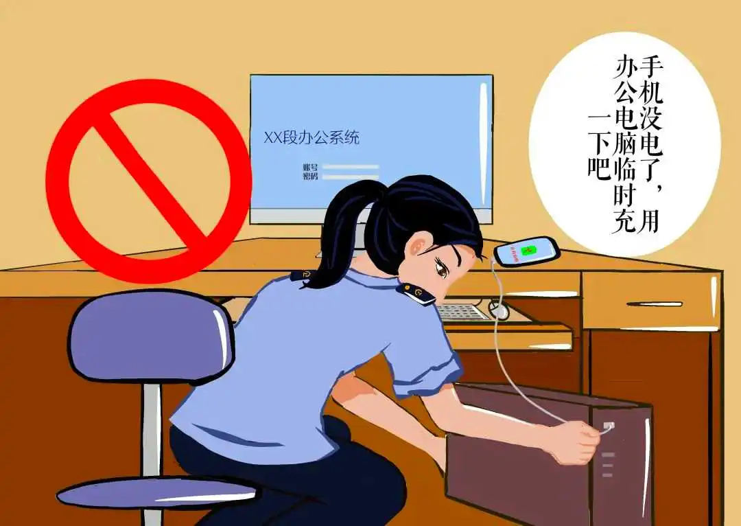 🔺常见错误情形:一是将数据线插上内网电脑的USB接口给手机、平板电脑等智能设备充电;二是手机通过蓝牙设备等连接内网电脑传输文件。