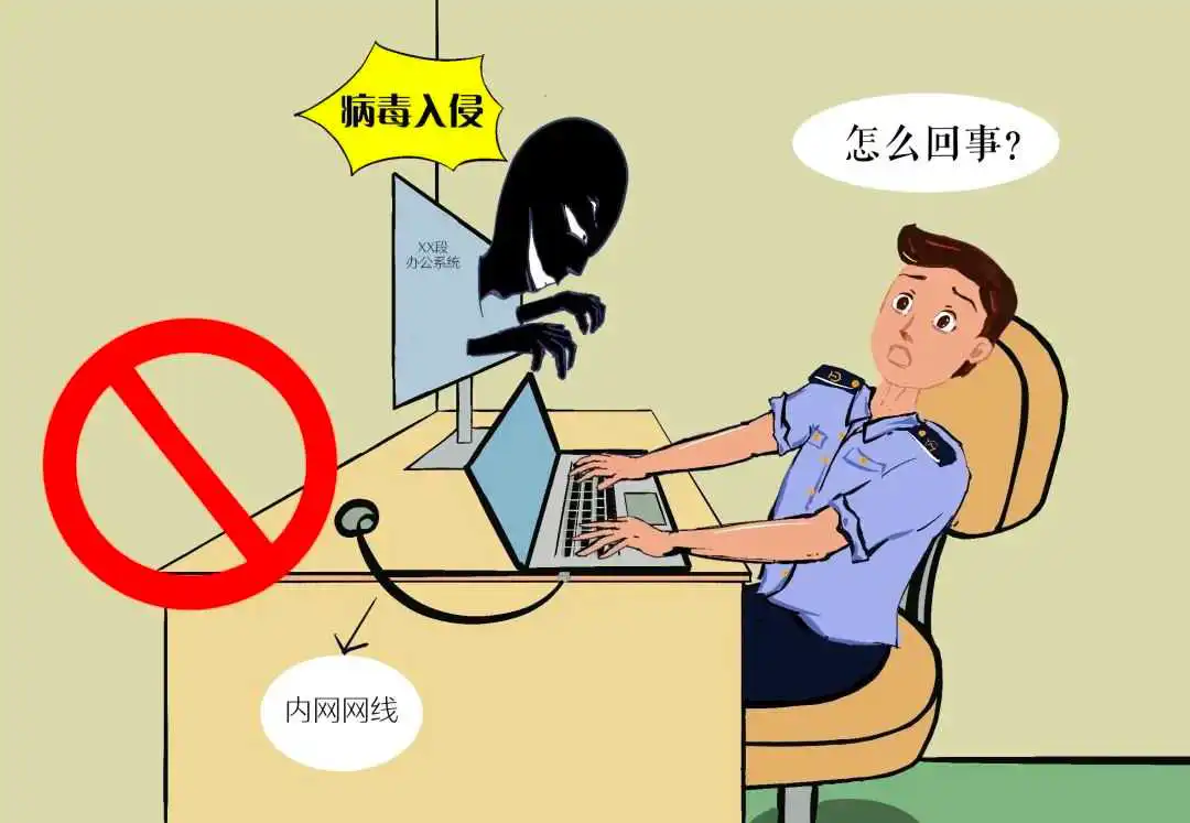 🔺常见错误情形:一是将要求统一安装的防病毒软件进行卸载;二是外网下载的软件未进行病毒检查直接拷贝到内网电脑上安装;三是长时间未对各类漏洞进行修复。