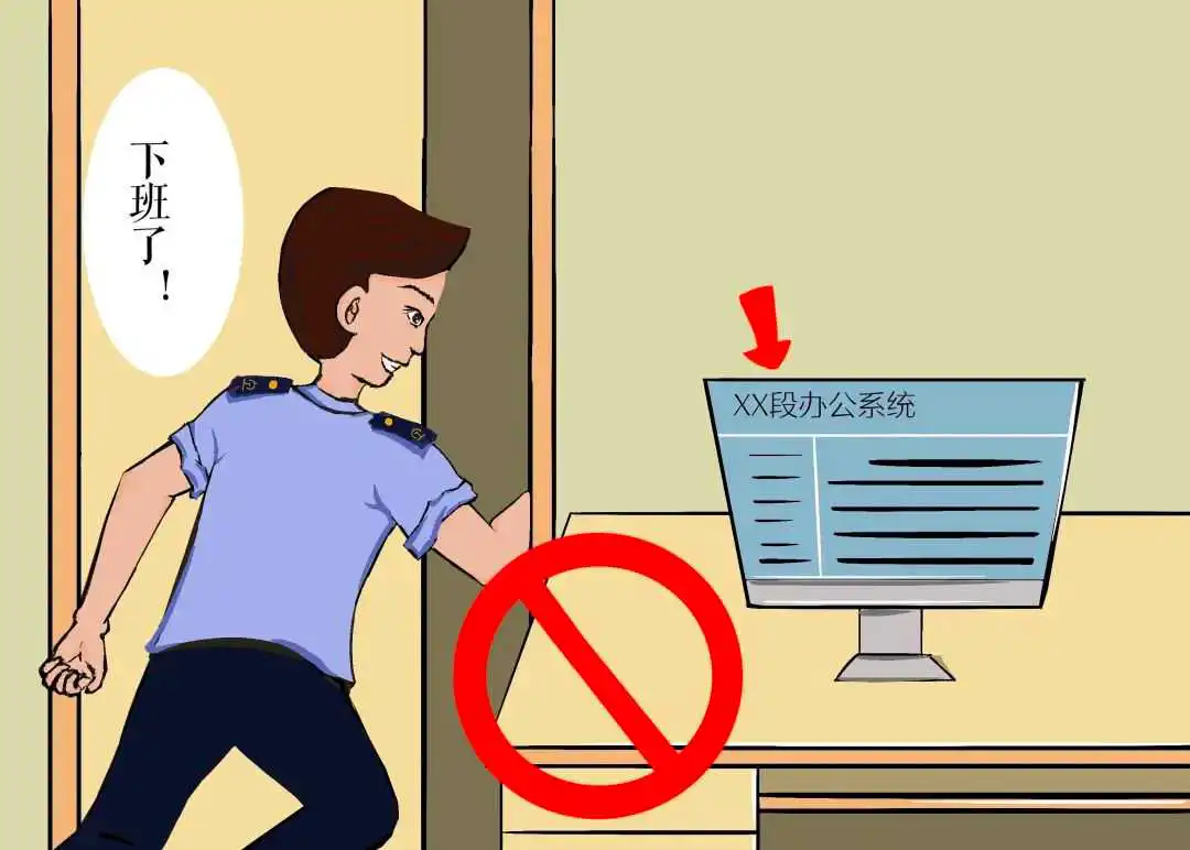 🔺常见错误情形:一是办公电脑未设置带有密码的屏保;二是人员离开后电脑不关机,办公室也不锁门。