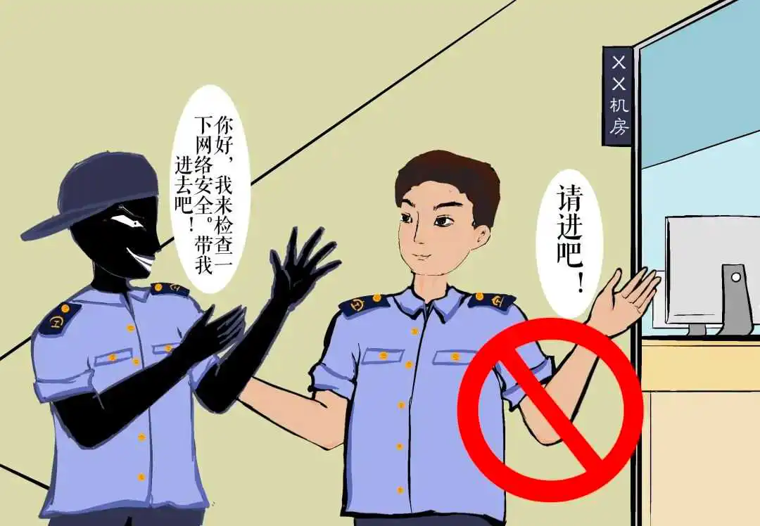 🔺常见错误情形:一是机房等要害部位日常不上锁或进出管理不到位,外来人员在机房作业未安排本单位人员陪同;二是未核实对方身份,随意将内网或外网电脑借给外部人员使用。