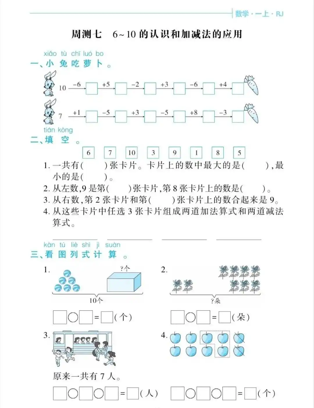 人教版数学一年级(上册)6、7分与合和《一图四式》