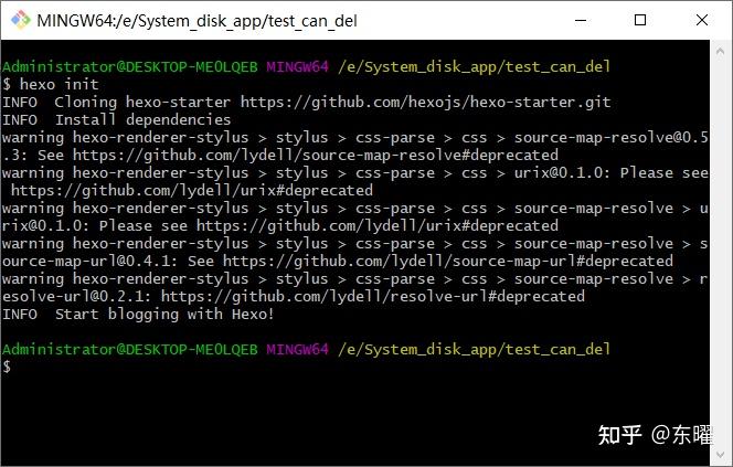 进入该文件夹,右键Git hash here ,键入命令安装Hexo脚手架: