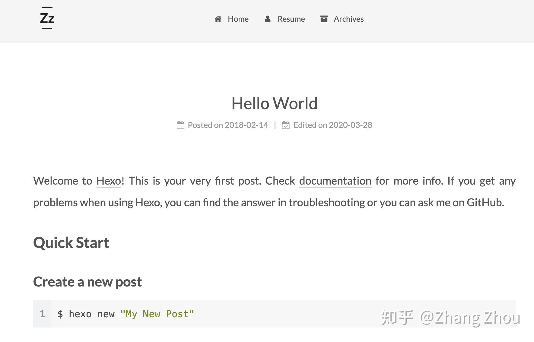 长久之计还是选择免费的平台,利用GitHub Pages,选用静态网页生成器Hexo(其他Jekyll之类也都大同小异,对于我来说都是功能远大于需求)。工作过程就是在自己的电脑上用Markdown写字,Hexo把Markdown文档转变成html格式,然后GitHub pages作为服务器托管网页文件。