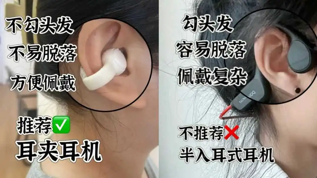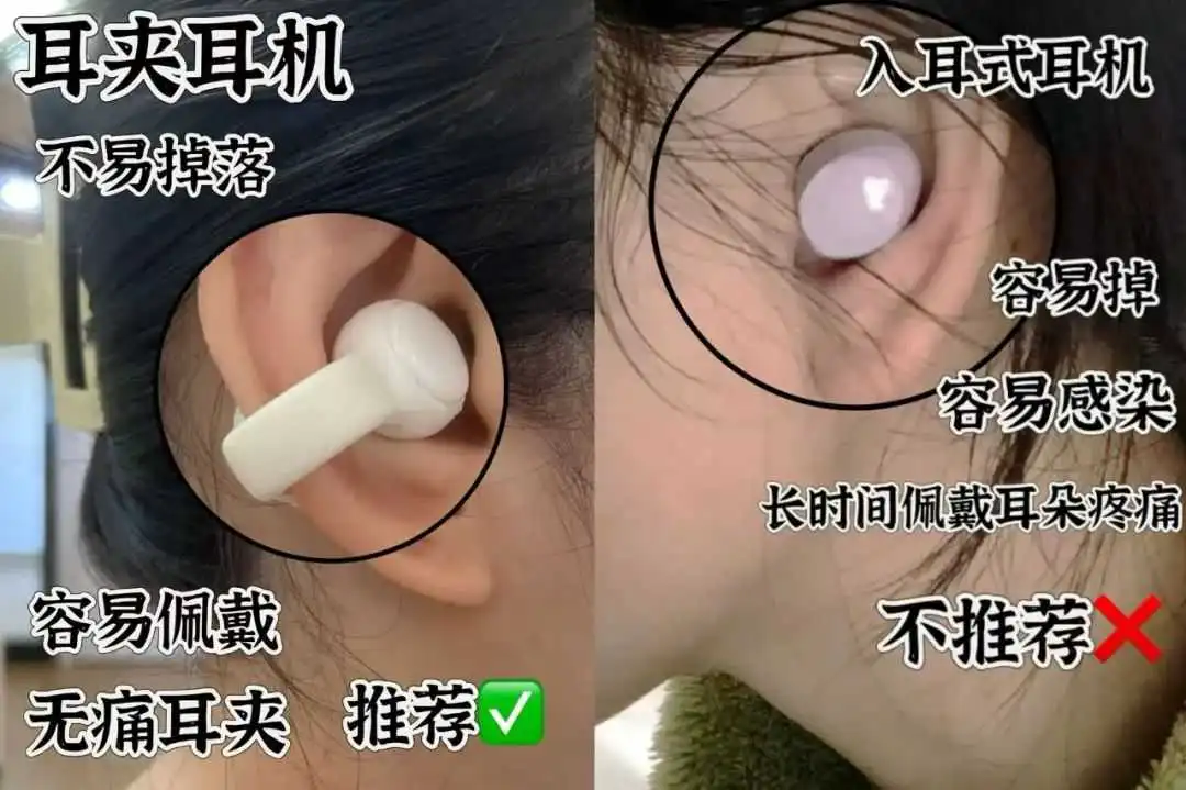 和传统蓝牙耳机相比,它采用耳夹式佩戴设计,不入耳、不伤耳,对耳朵敏敏的家姐妹相当友好