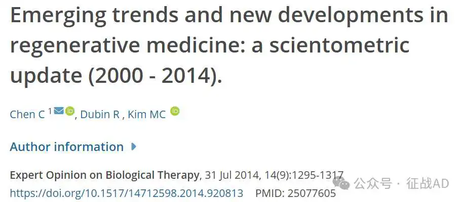 文献计量分析顶咖Chaomei Chen 等研究学者在期刊 Expert Opinion on Biological Therapy 上发表了题为