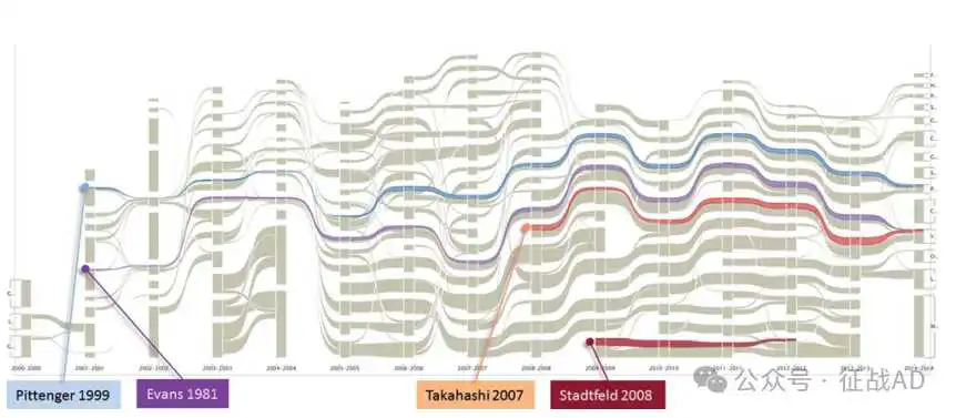 图8. 2000-2014 年的时间线可视化,包括 2012 年以后的新进展