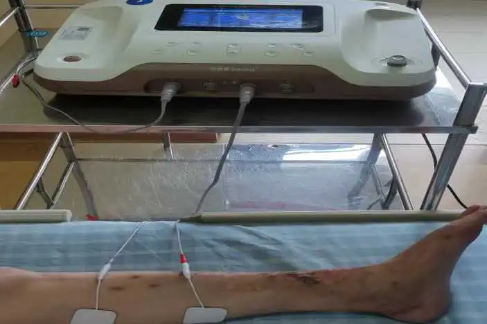 为何叶先生的左下肢恢复得如此之快吗?因为治疗团队对他使用了一个战斗法宝——神经肌肉电刺激仪。它作为一种理疗工具,能够通过电流刺激人体肌肉和神经组织,帮助促进康复进程,被广泛应用于康复和运动医学领域,取得了显著的疗效。