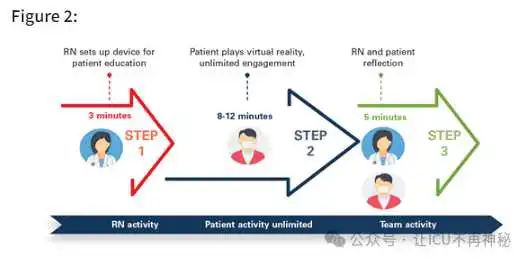 多学科团队参与评估、规划、干预交付、游戏选择以及与患者和家属的沟通对成功至关重要。对于护理研究和质量改进团队来说,VR的使用可以为患者的移动性提供一种创造性的选择,这种选择可以建立在传统的物理治疗、职业治疗和运动活动范围的基础上。尽管该团队很重要,但一旦制定了计划,并根据物理治疗师和职业治疗师的规定进行了调整,VR干预就可以由护理护士独立启动,并由患者作为标准日常活动的一部分进行。VR软件在患者处于虚拟空间时提供不同强度和程度的患者运动的潜力允许患者活动的个性化和定制,以满足运动需求,而不会干扰周围的设备和侵入性设备。