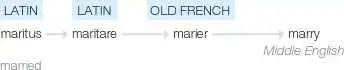Marry:源自拉丁语 marītus,本意是 husband, suitor.