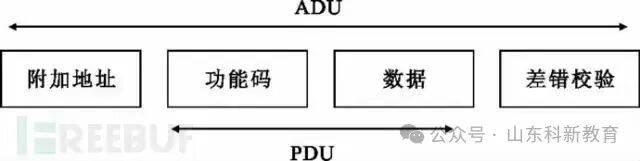 Modbus使用一种简单的MasterandSlave主从协议(客户机/服务器协议)进行通信。客户机作为主站,向服务器发送请求;服务器(从站)接到请求后,对请求进行分析并作出应答。其中使用的通信帧被称为应用数据单元(Application Data Unit,ADU),它包括通信地址段、功能代码段、数据段和校验段,如下图: