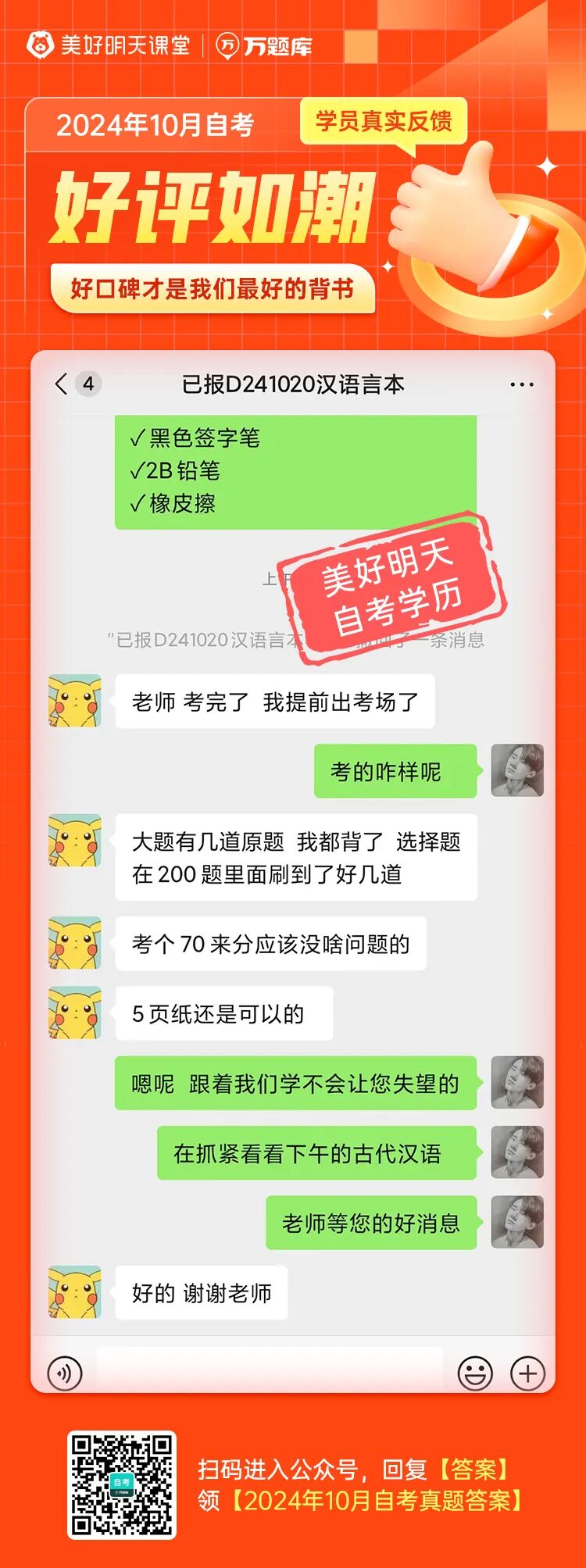 在2024年10月自考当中,超80%万题库学员反映遇到了原题,且不止1道。