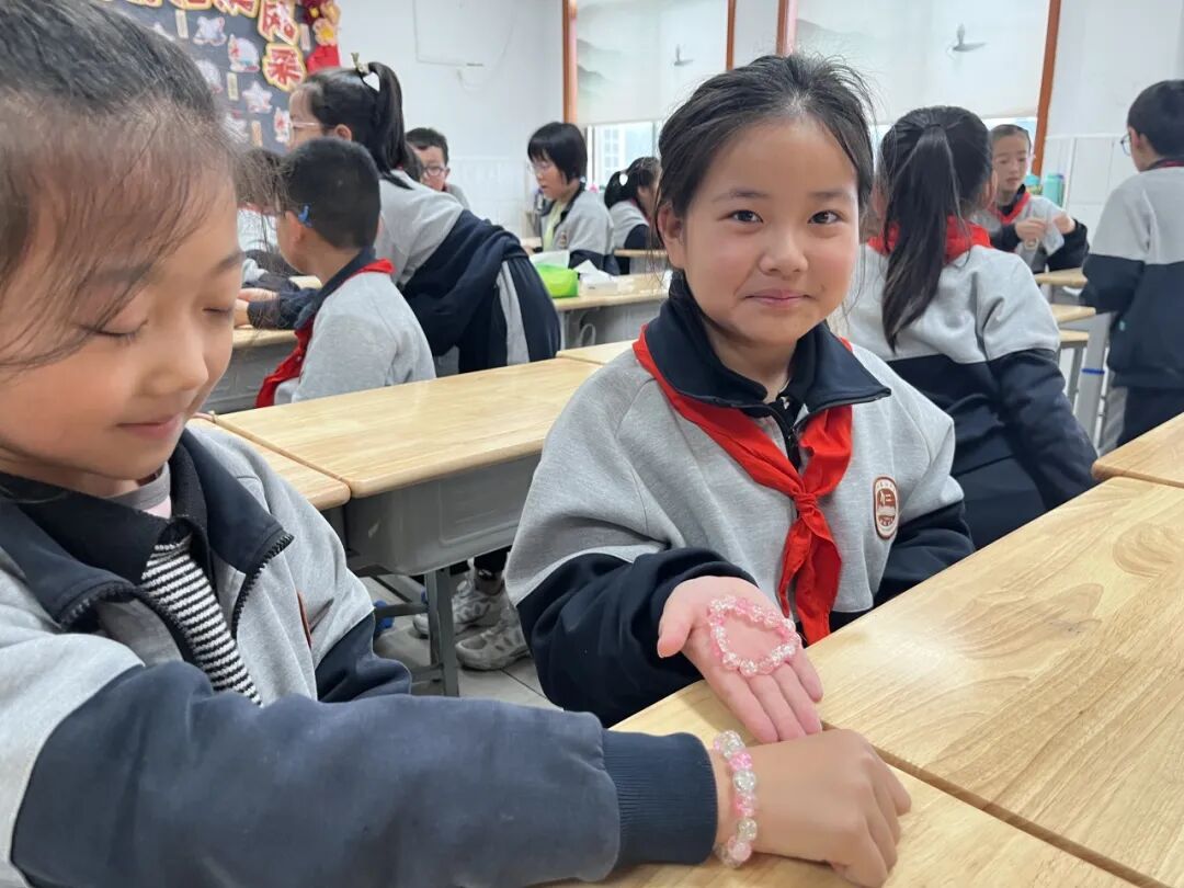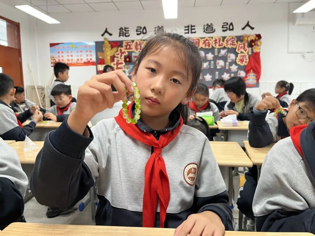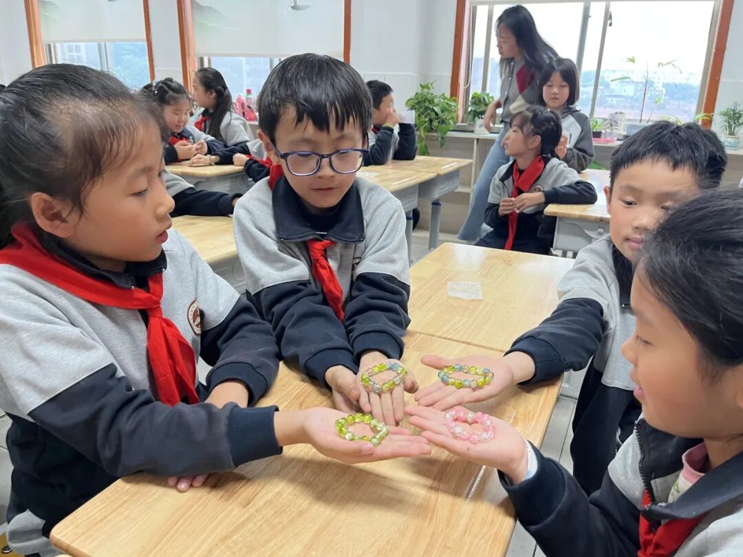 时间的脚步总是匆匆,随着下课铃声的响起,一节令人难忘的课堂落下帷幕。同学们捧着胡子航妈妈送给大家的琉璃手串,简直爱不释手。