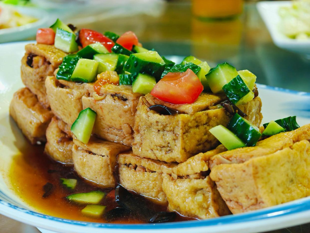 博山豆腐箱是一道具有淄博特色的传统名菜,以豆腐为主要原料,经过精心烹制而成。豆腐箱外形美观,色泽金黄,口感鲜嫩,味道醇厚,是淄博地区宴席上的常见菜肴。