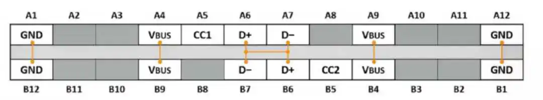 a. 必须包含CC、D+/D-、VBUS和GND等14个触点(即A1、A4、A5、A6、A7、A9、A12、B1、B4、B5、B6、B7、B9和B12);
