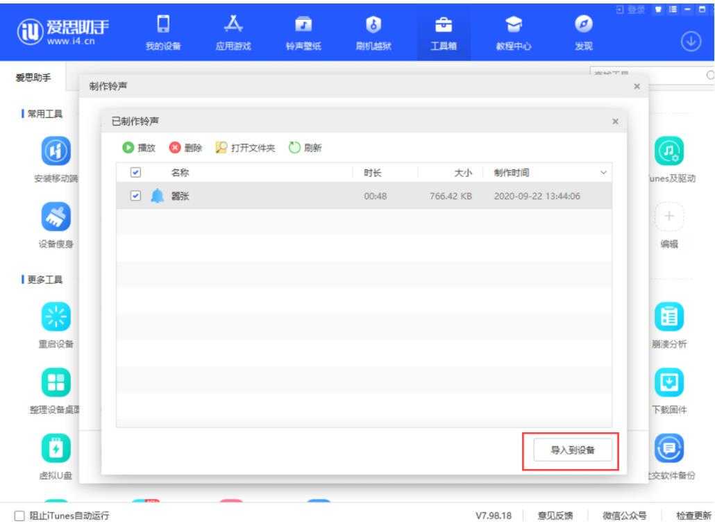 导入过程中保持数据线的连接,请不要拔掉数据线也不要强行关闭移动设备上的爱思助手,等待导入完成。
