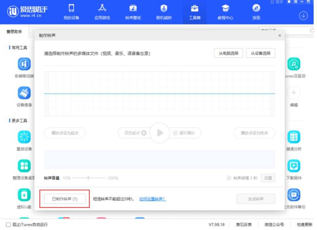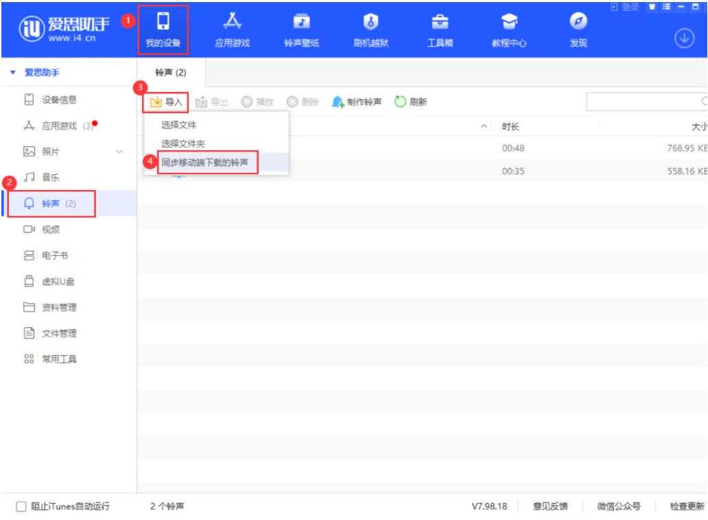 当用户通过爱思助手“铃声壁纸”功能导入壁纸到苹果设备中时,如果选择了“导入到设备图库”,将无法在苹果设备中直接删除。需要使用爱思助手 PC 端进入设备方可删除,请参考以下方法进行删除。