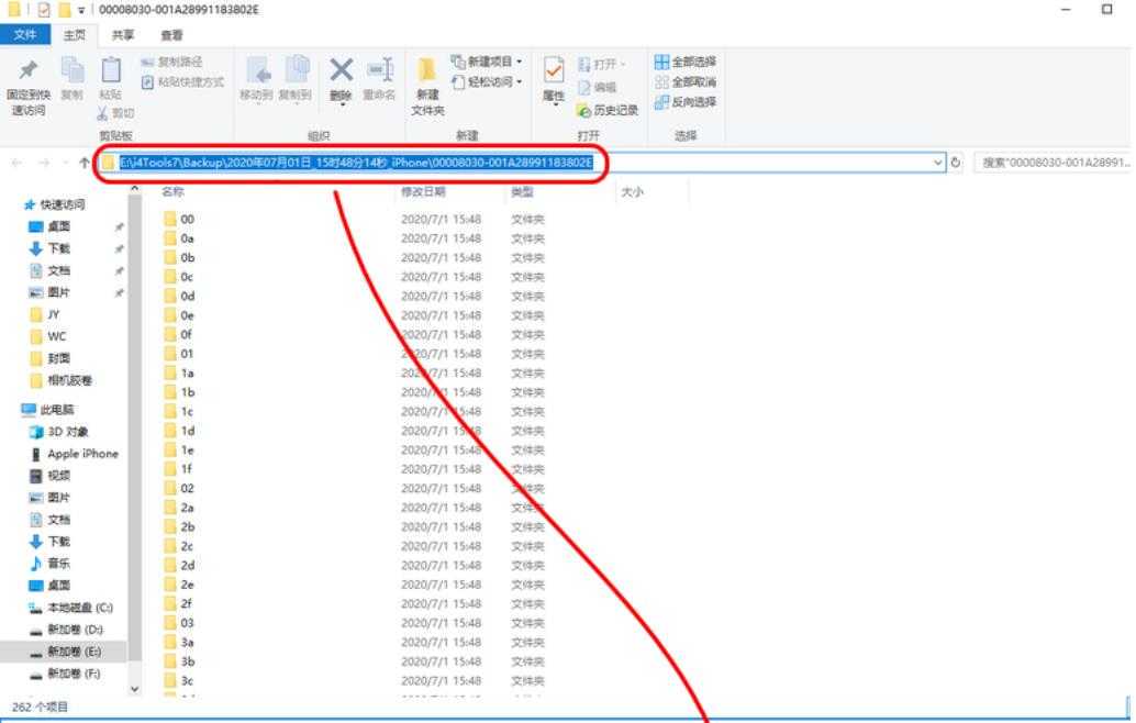 2、新备份完成后,在旧备份中找到需要提取的对应文件,将旧备份中的文件覆盖到刚才新备份的文件夹中;