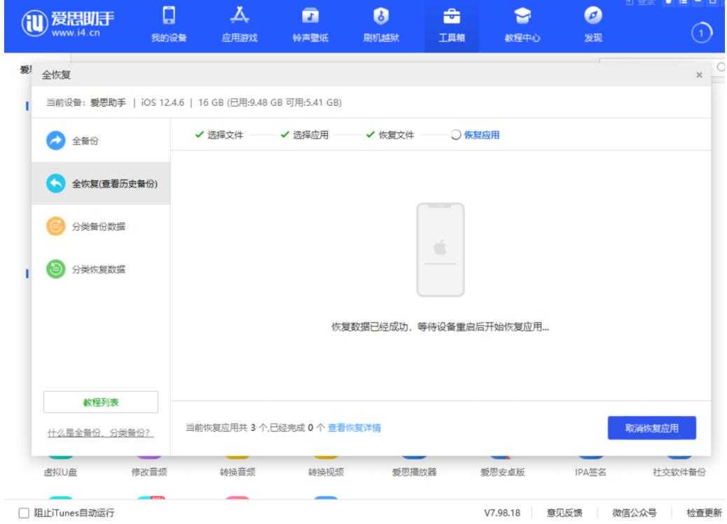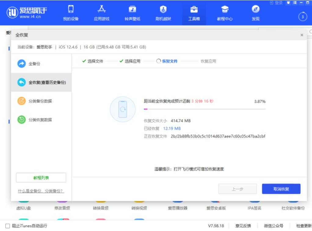 第二十:爱思助手全备份恢复时提示“未找到文件”怎么办?