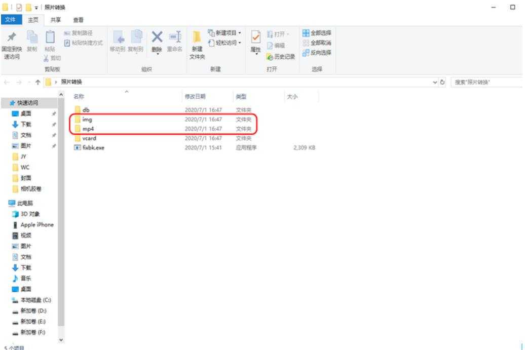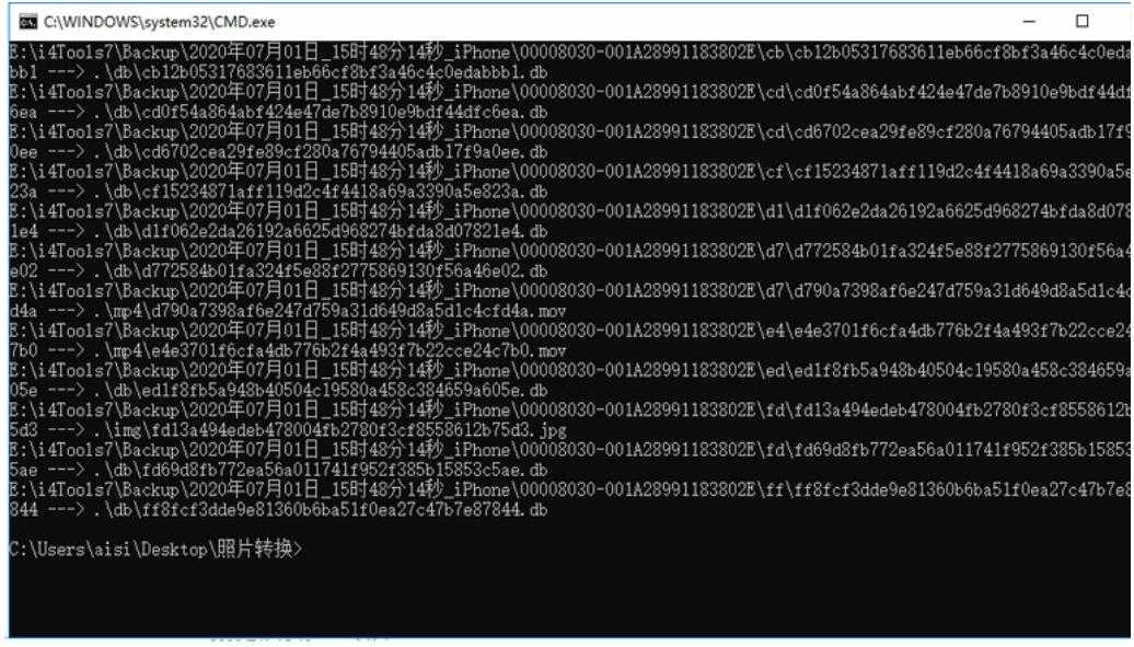 回车后将自动转换全备份中的照片,中途不要关闭命令行工具,等待转换结束后,打开转换工具所在的文件夹可以看到 img 和 mp4 文件夹,它们分别保存了全备份中的照片和视频。