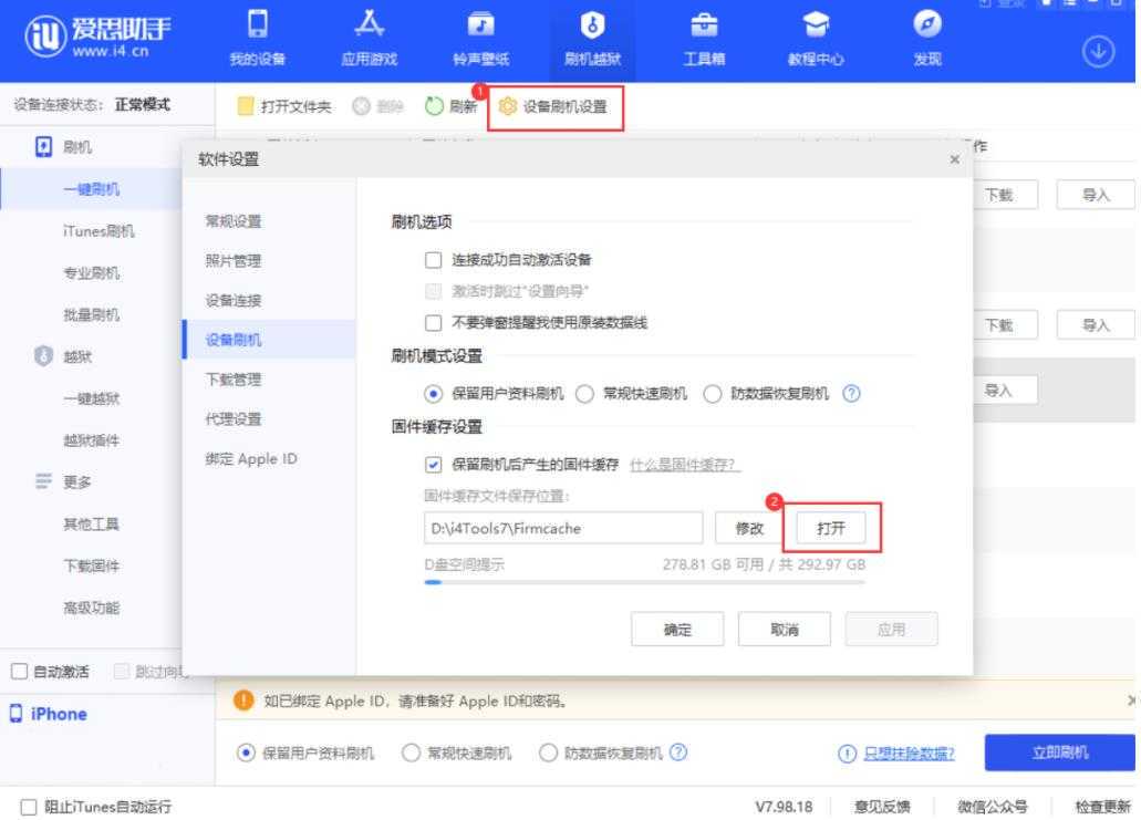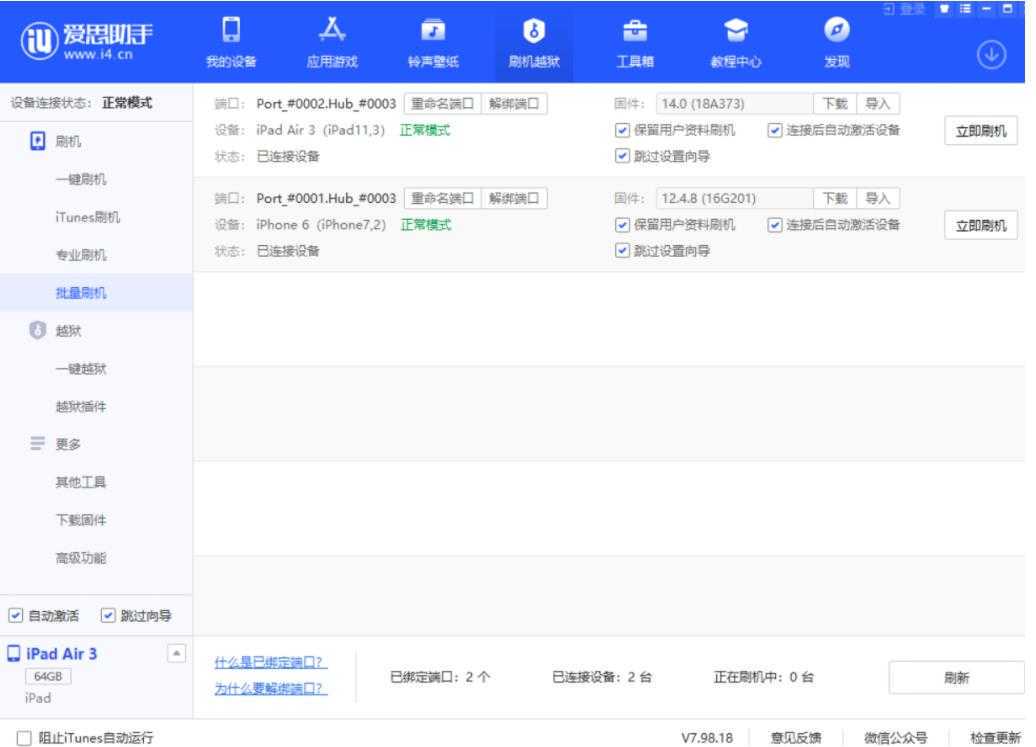 1、支持正常模式、DFU模式、恢复模式三大模式下连接爱思助手自动匹配固件一键刷机,第一时间支持苹果最新iOS固件下载及刷机,支持所有iOS设备刷机;勾选“保留用户资料刷机”,刷机后手机资料不丢失;