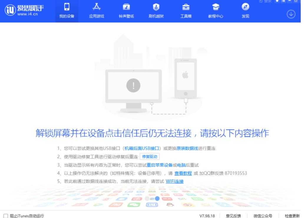 如果连接不正常请参考教程:爱思助手频繁出现操作失败怎么办?