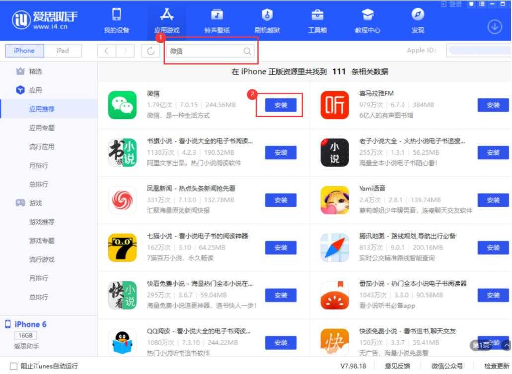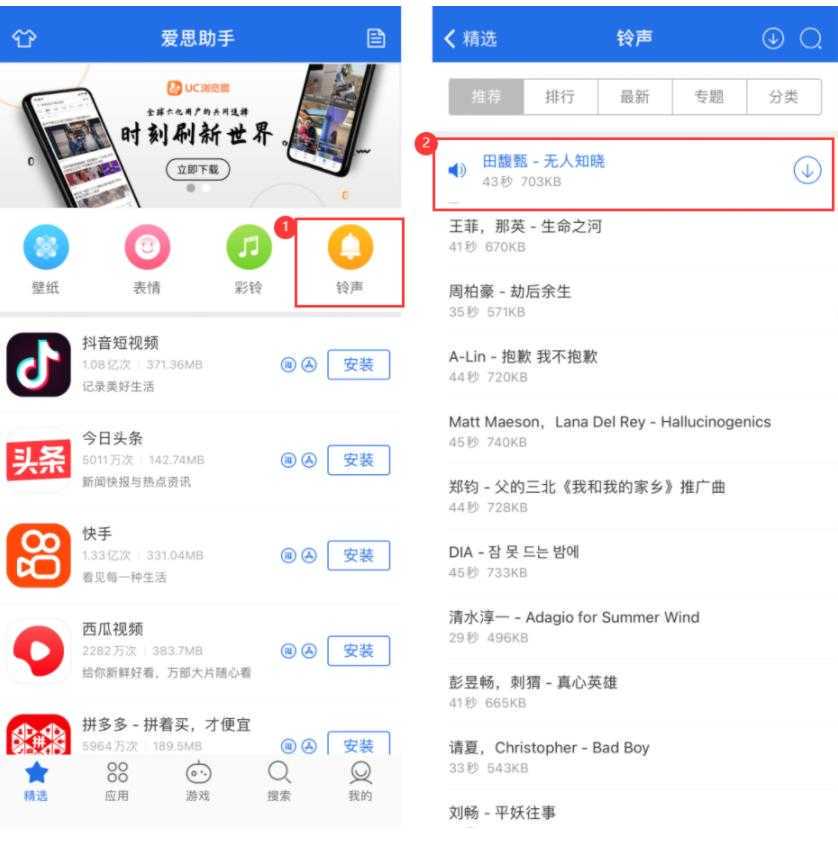 无论你是否越狱都能通过爱思助手下载应用、游戏,无需帐号,免费高速下载,海量正版资源应有尽有;更有个性铃声、壁纸免费下载。