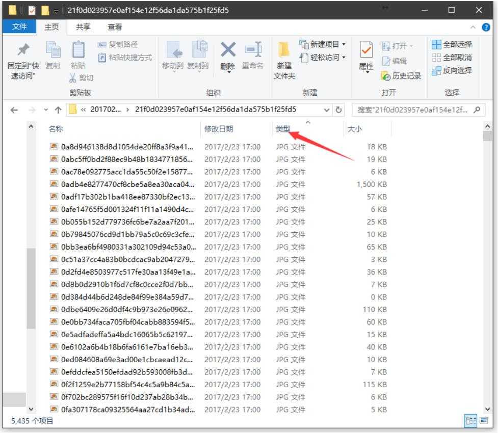 6、运行后结果如下,在各个文件夹中点击下按类型排序,就可以看到全部的照片,可以将图片拷贝出来后再按大小筛选一下。