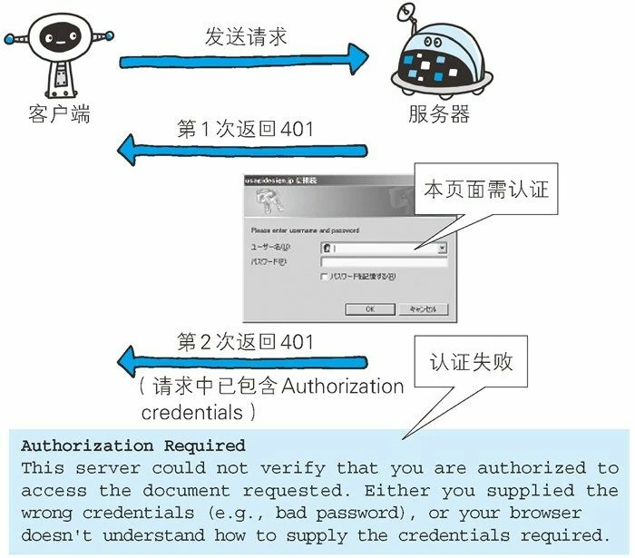 客户端拿到响应首部的 WWW-Authenticate中的验证方法之后,就会在客户端显示认证窗口,用户输入完成,客户端就会带上认证信息再次发送请求。