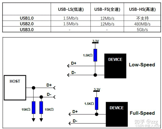低速设备与全速设备通过硬件上拉电阻区分 。高速设备与全速设备均是 D+上拉 ,高速设备在枚举过程中host 通过高速设备总线特有的电平序列得知设备类型。