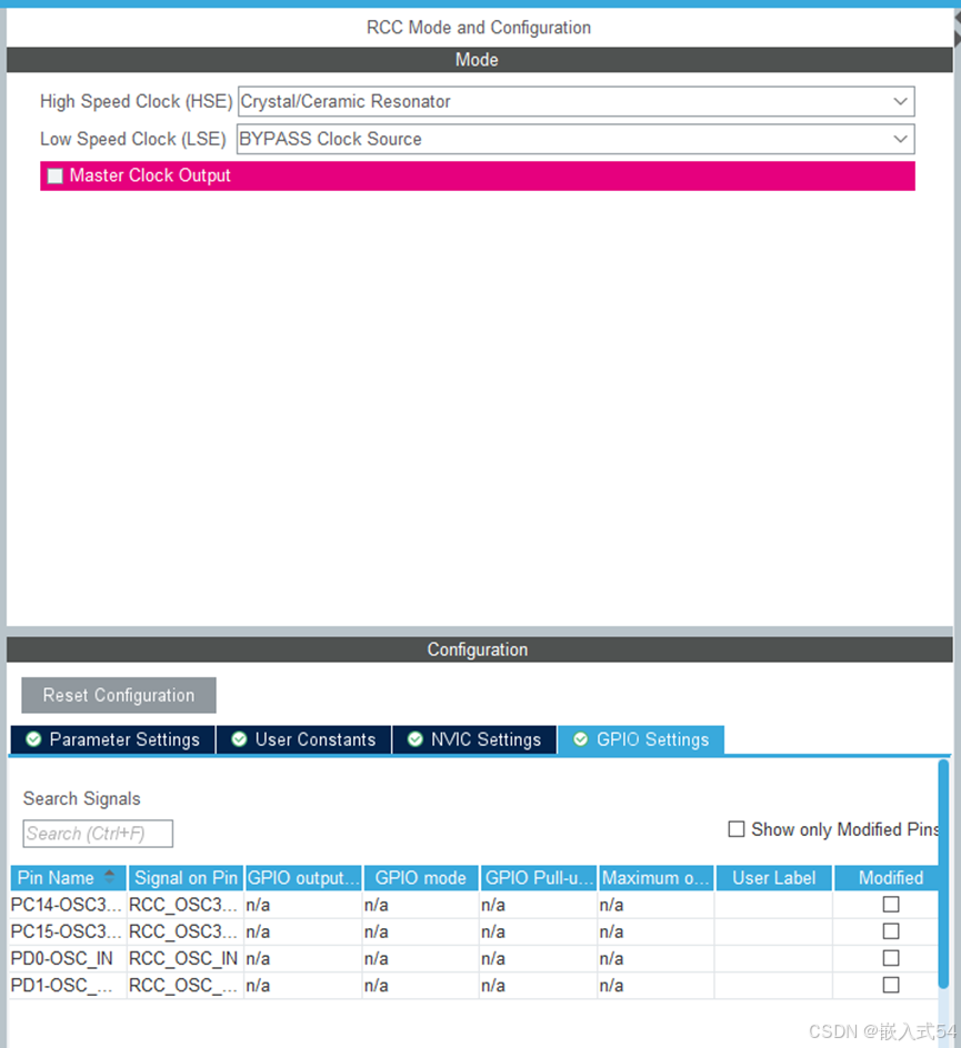 HSE(外部高速时钟) 为 Crystal/Ceramic Resonator(晶振/陶瓷谐振器)