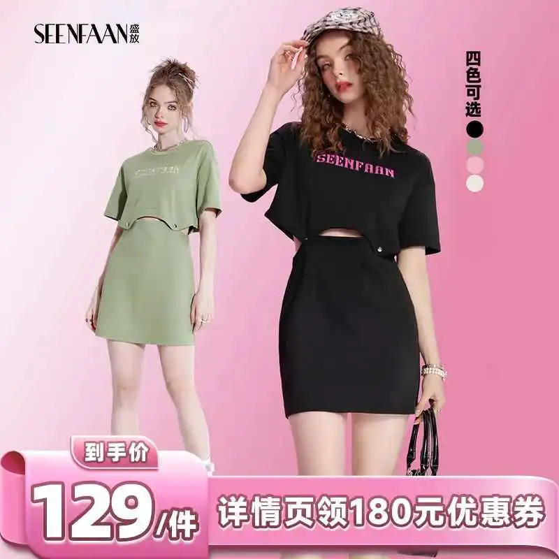 【李佳琦直播间】SEENFAAN盛放短袖连衣裙可拆卸两件套装休闲裙