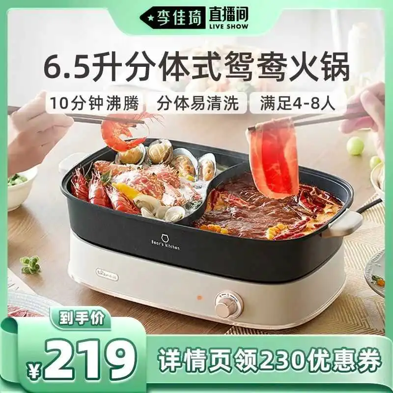 【李佳琦直播间】小熊分体式鸳鸯锅大容量电火锅家用锅电锅电炒锅