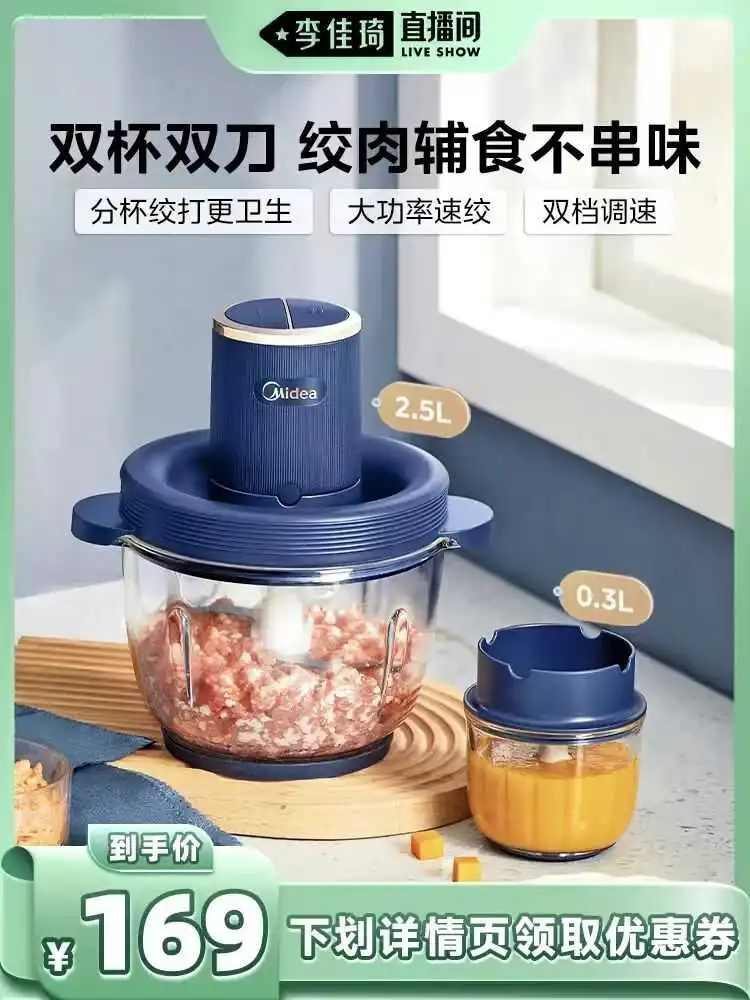 【李佳琦直播间】美的绞肉机家用辅食机料理机大容量双杯搅拌机