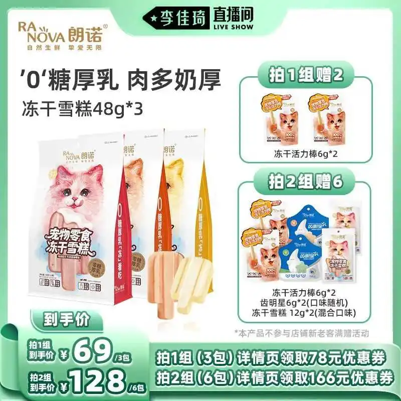 【李佳琦直播间】朗诺猫零食冻干雪糕48g*3 【3种口味,36支】