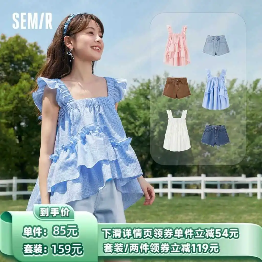 【李佳琦直播间】森马小飞袖吊带小衫上衣+百搭三色高腰牛仔短裤