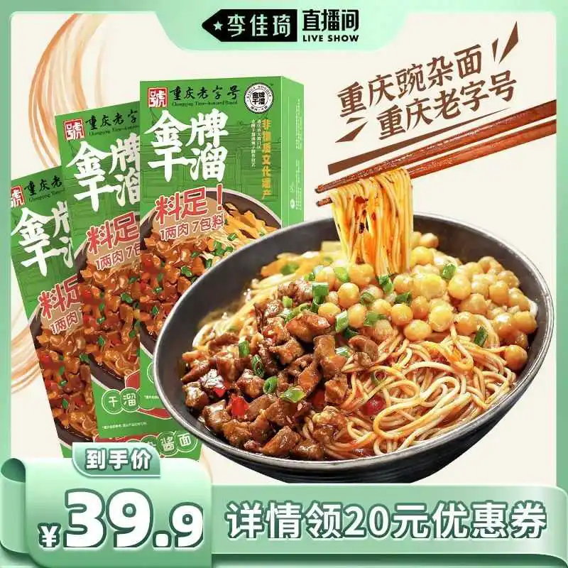 【李佳琦直播间】金牌干溜重庆小面老字号非遗调料豌豆杂酱面3盒
