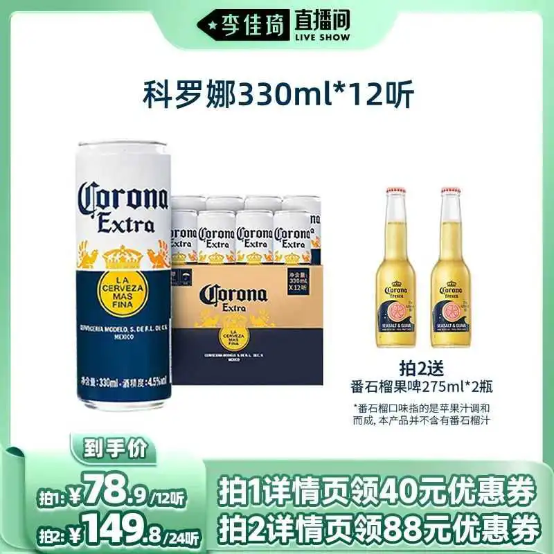 【李佳琦直播间】CORONA科罗娜墨西哥风味啤酒330ml*12听啤酒整箱