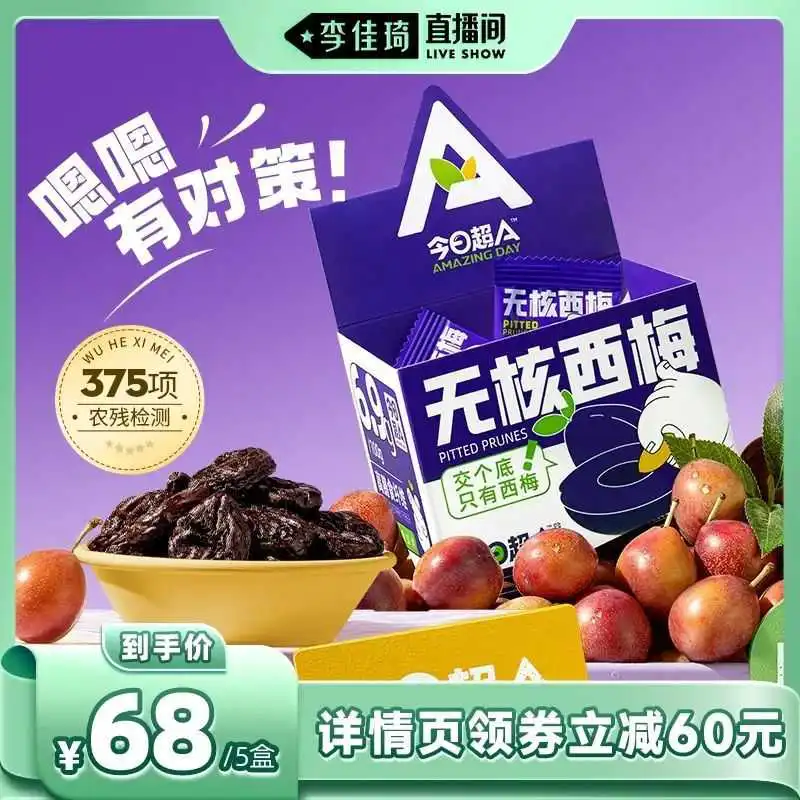 【李佳琦直播间】今日超A_无核西梅5盒无添加糖精便秘果干蜜饯
