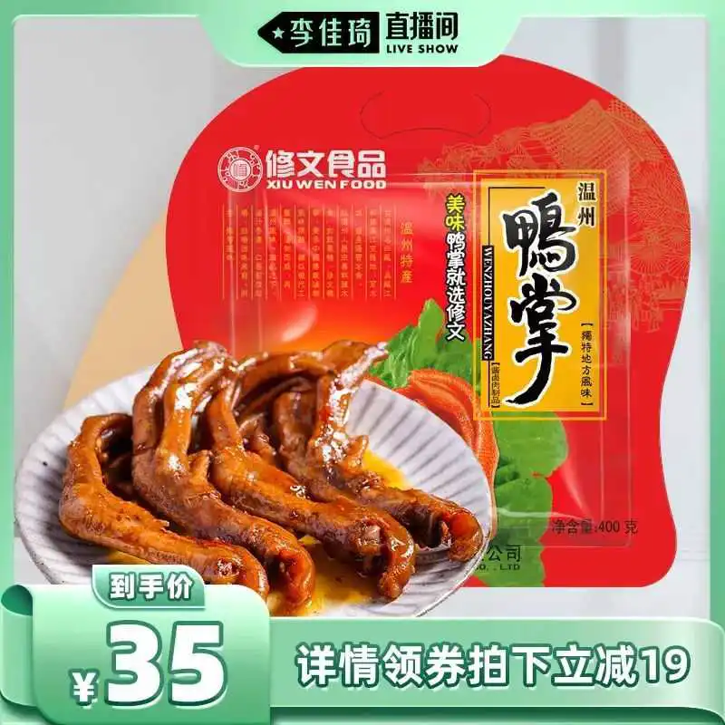 【李佳琦直播间】修文酱鸭掌温州特产鸭爪零食开袋即食净重400g