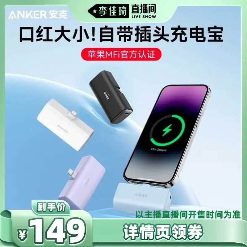 【李佳琦直播间】Anker安克胶囊充电宝苹果MFi认证小巧便携式移动电源快充适用iPhone14手机苹果13/12Promax