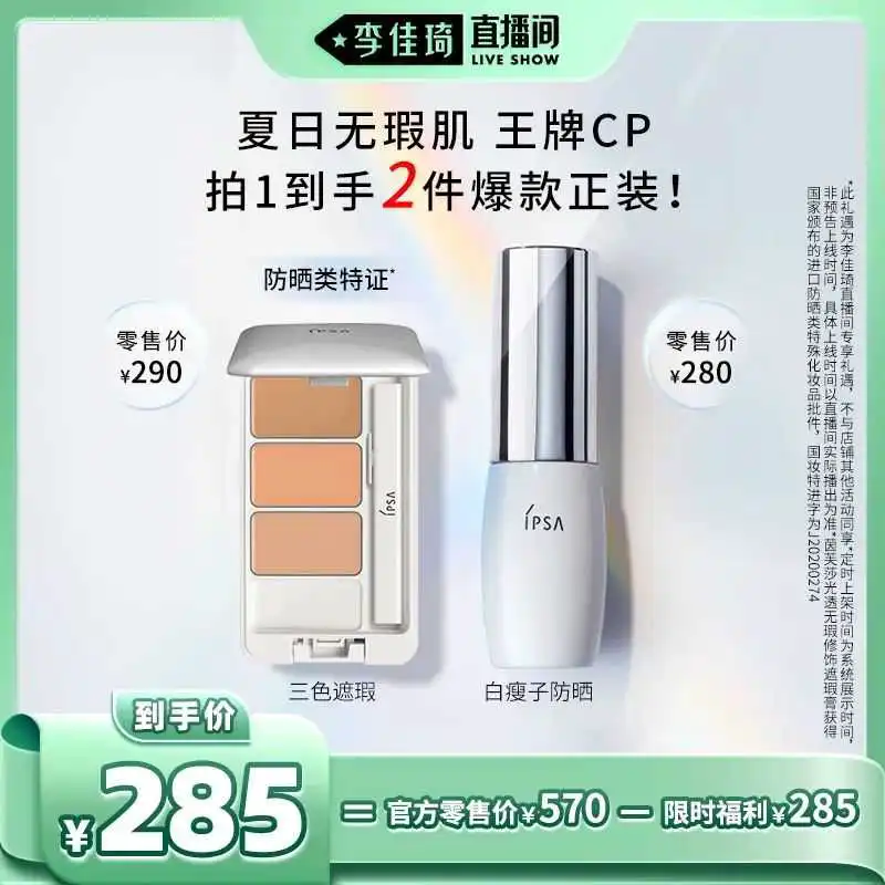 【李佳琦直播间】IPSA三色遮瑕白瘦子防晒套装无瑕底妆