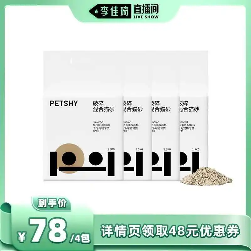 【李佳琦直播间】PETSHY百宠千爱 破碎猫砂混合豆腐砂2.5kg*4包